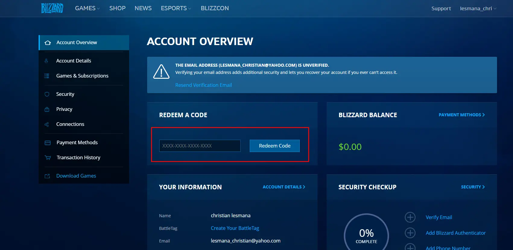 3. Pada Account Overview, Masukkan Kode Voucher anda di kolom Redeem a Code dibawah ini.