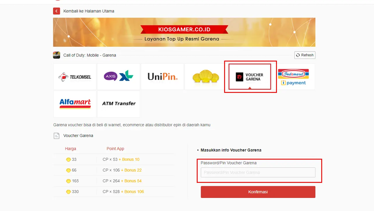 3. Setelah anda login, langsung masukkan kode voucher anda di kolom dibawah ini.